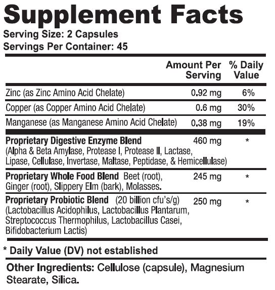 Recommended Dosage: Take two capsules with each cooked meal to ensure digestion and assimilation.